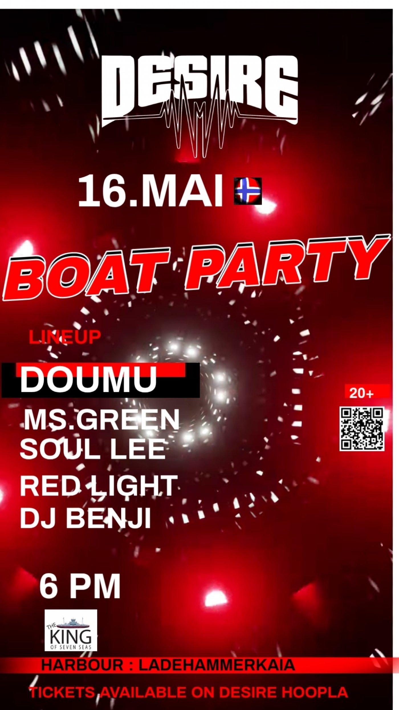 D E S I R E - YEAR II 16. Mai Boat Party The King Ladehammerkaia 18:00 – 03:15