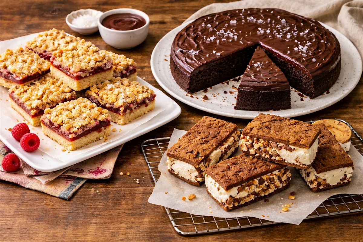 In this class, Chef Maria will lead you in creating three desserts that can be customized to your tastes and any occasion. We will make a chocolate olive oil cake, jam crumble bars, and ice cream sandwiches, inspired by State Bird Provisions in San Francisco.