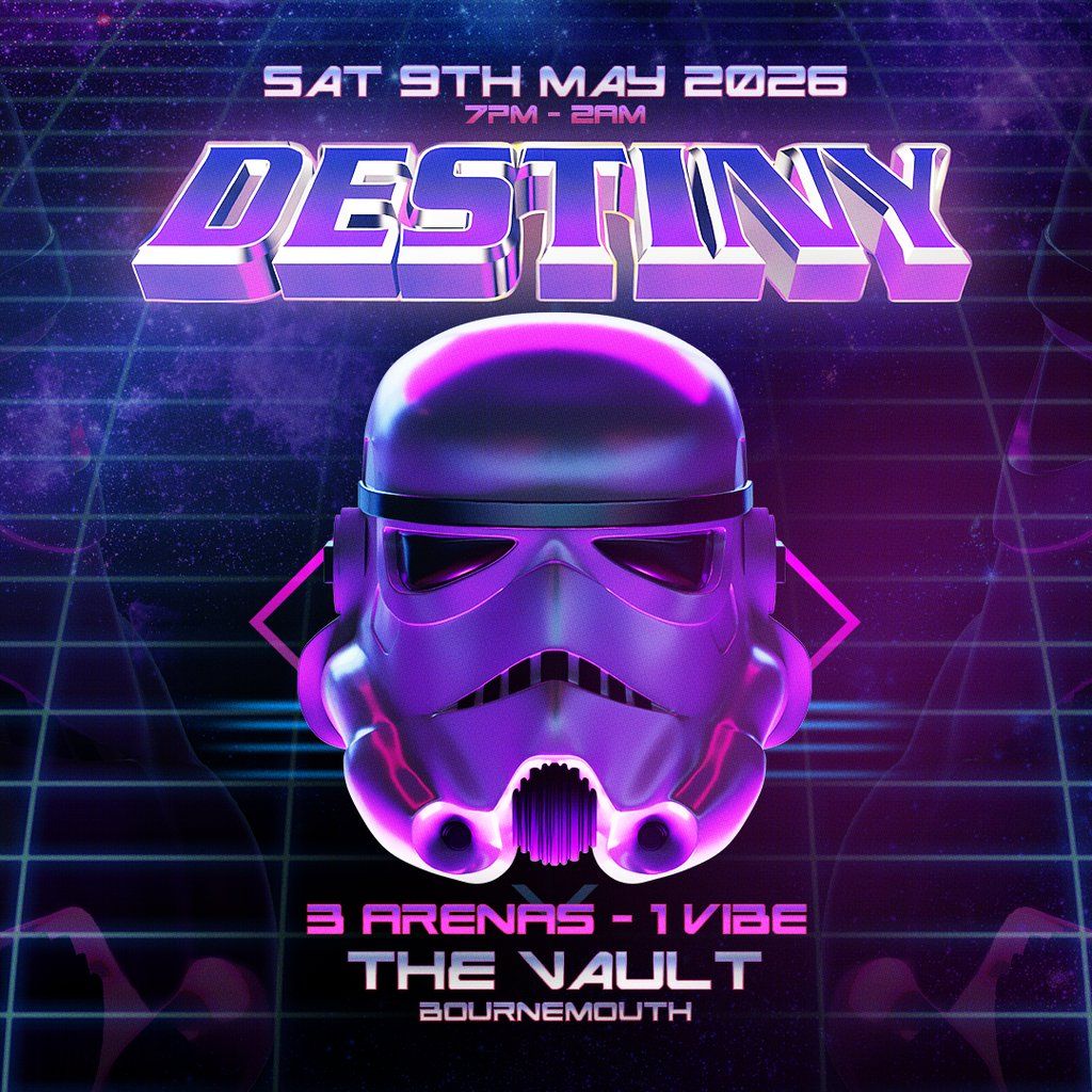 DESTINY , one of the South coasts pioneering Rave brands, brings you once again our unique 3 rooms 1 vibe atmosphere. IT IS YOUR DESTINYArtists