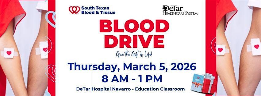 Join us at DeTar Hospital Navarro - Education Classroom to make a life-saving donation. Your contribution can help those in need in our community. Let's come together and make a difference! Whether you get a $10 or $100 e-gift card, you walk away with the satisfaction of saving lives. Thank you to all donors whose selfless contributions help save lives.