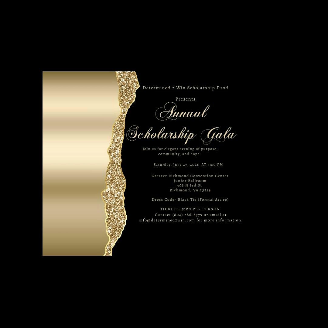 Join us for the Determined 2 Win Scholarship Gala, an inspiring evening dedicated to building opportunity and expanding access to higher education for high school seniors in the Northern Neck of Virginia. Enjoy a delicious meal, live entertainment, silent auction and more as we reward these amazing young scholars!