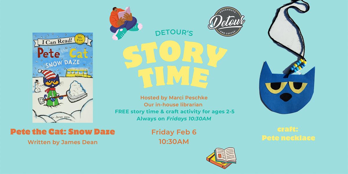 Detour's Story Time is a FREE reading and craft activity for ages 2-5. This community program is put on by nationally recognized neighborhood doughnut shop, Detour Doughnuts, and their in-house librarian & published author, Marci Peschke.