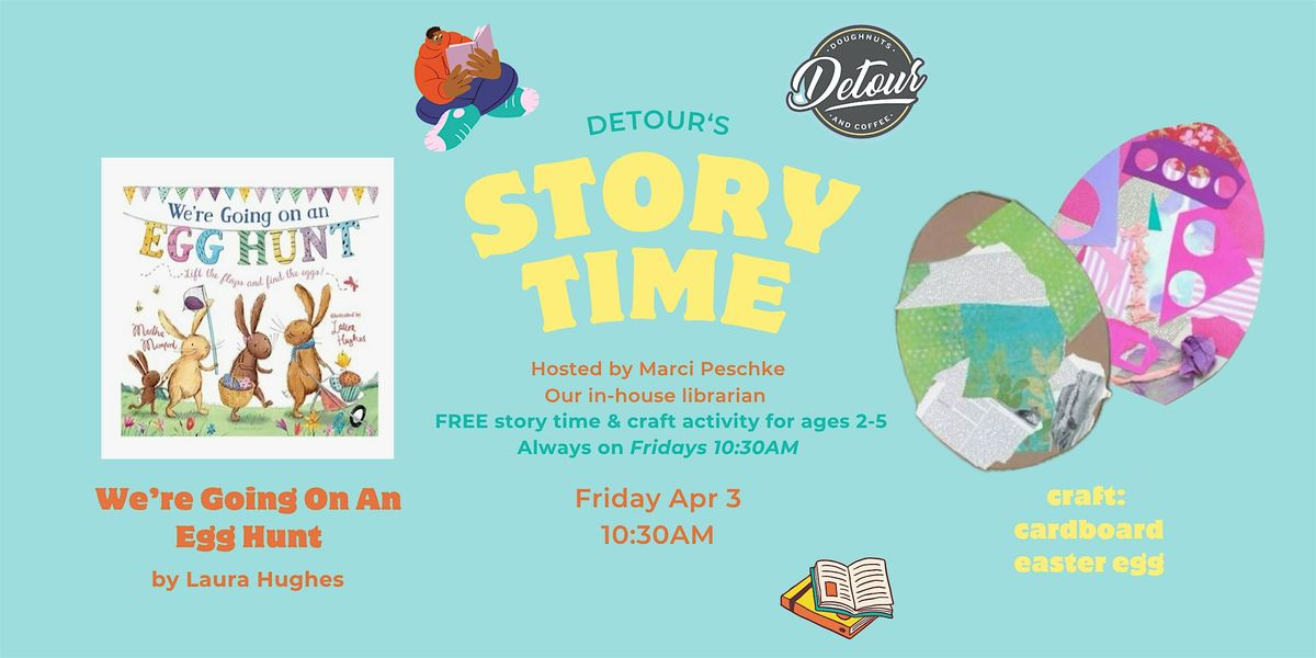 Detour's Story Time is a FREE reading and craft activity for ages 2-5. This community program is put on by nationally recognized neighborhood doughnut shop, Detour Doughnuts, and their in-house librarian & published author, Marci Peschke.