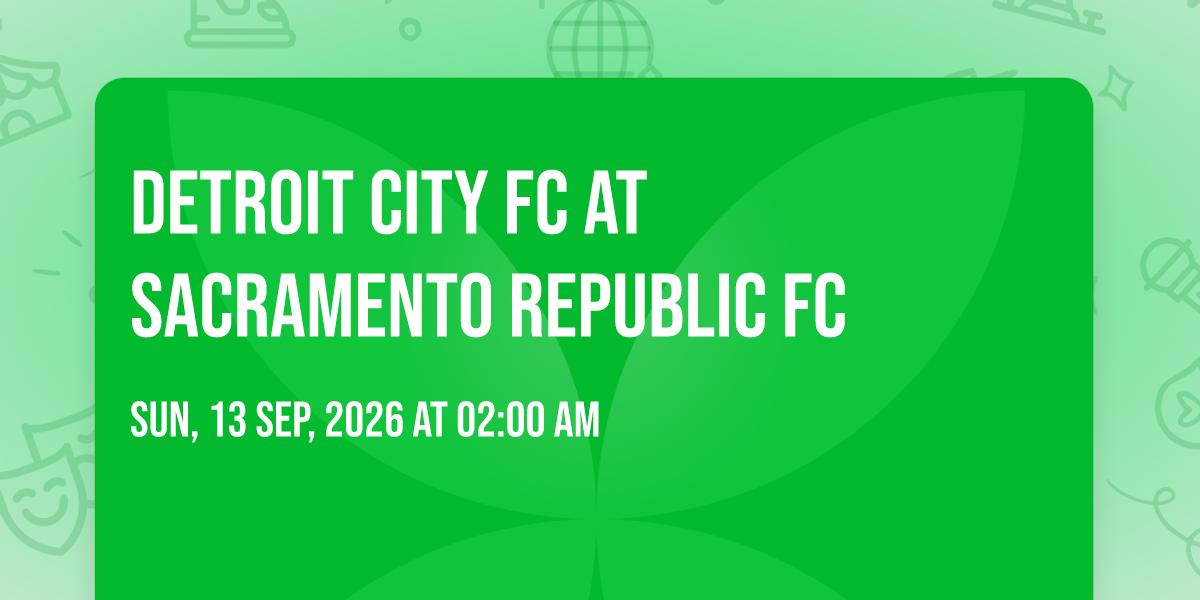 📍 Location: 38.5914, -121.438🎉 Welcome to Detroit City FC at Sacramento Republic FC, where the impossible becomes possible and dreams take flight! 🏛️ Join us at Heart Health Park in the heart of Sacramento, CA for an event that will redefine your expectations. 📅 On September 13th, 2026 at 02:00 AM, witness the transformation of space and time into something truly magical. ✨ It's a curated experience combining the best of innovation, entertainment, and community spirit, creating moments that will be remembered for years to come. Whether you're a first-time visitor or a seasoned enthusiast, prepare to be amazed. 🎊 Book now to ensure your place in this unforgettable experience!