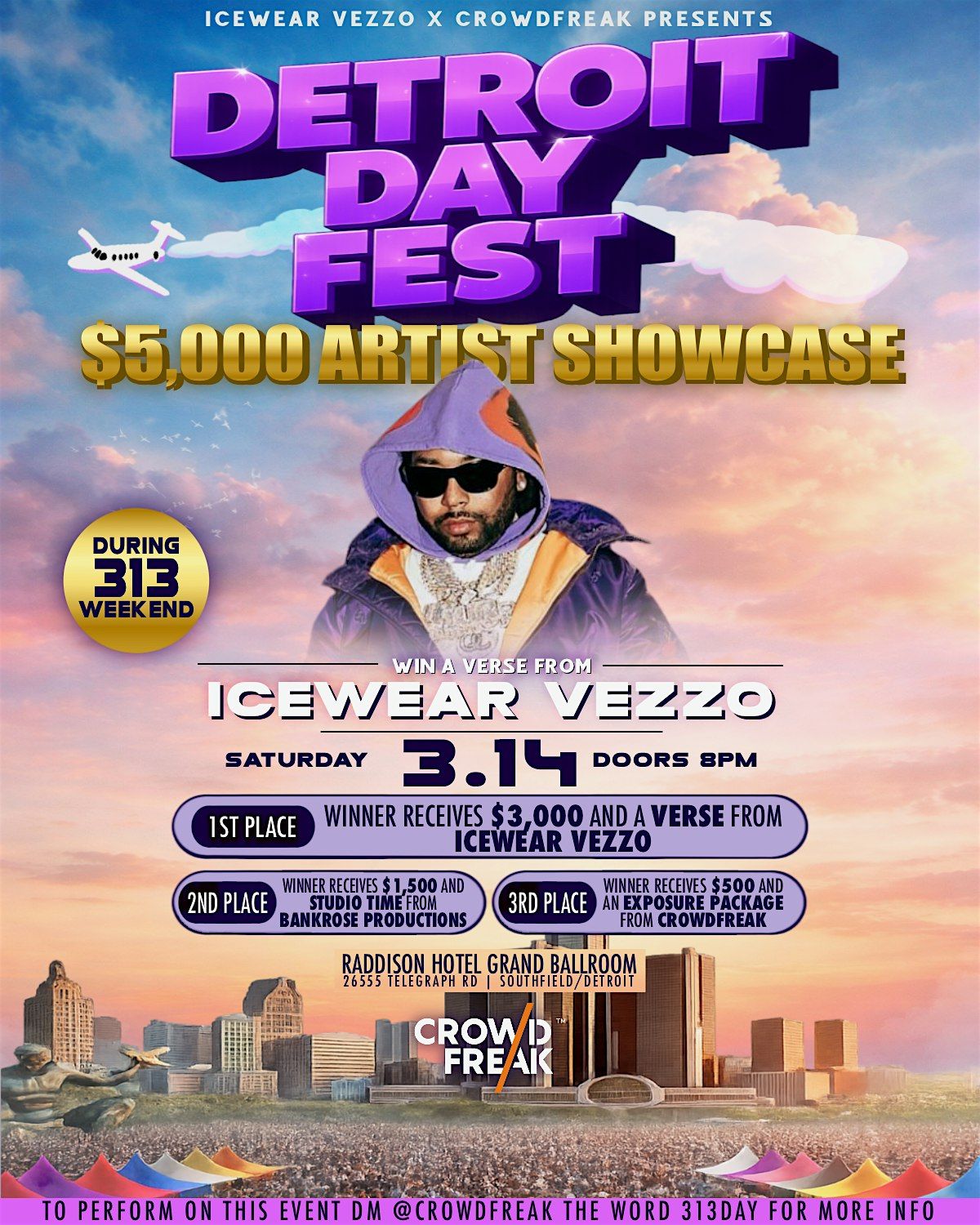 Winners of this artist showcase will go home with $5000 in cash Prizes & a verse with Icewear Vezzo!