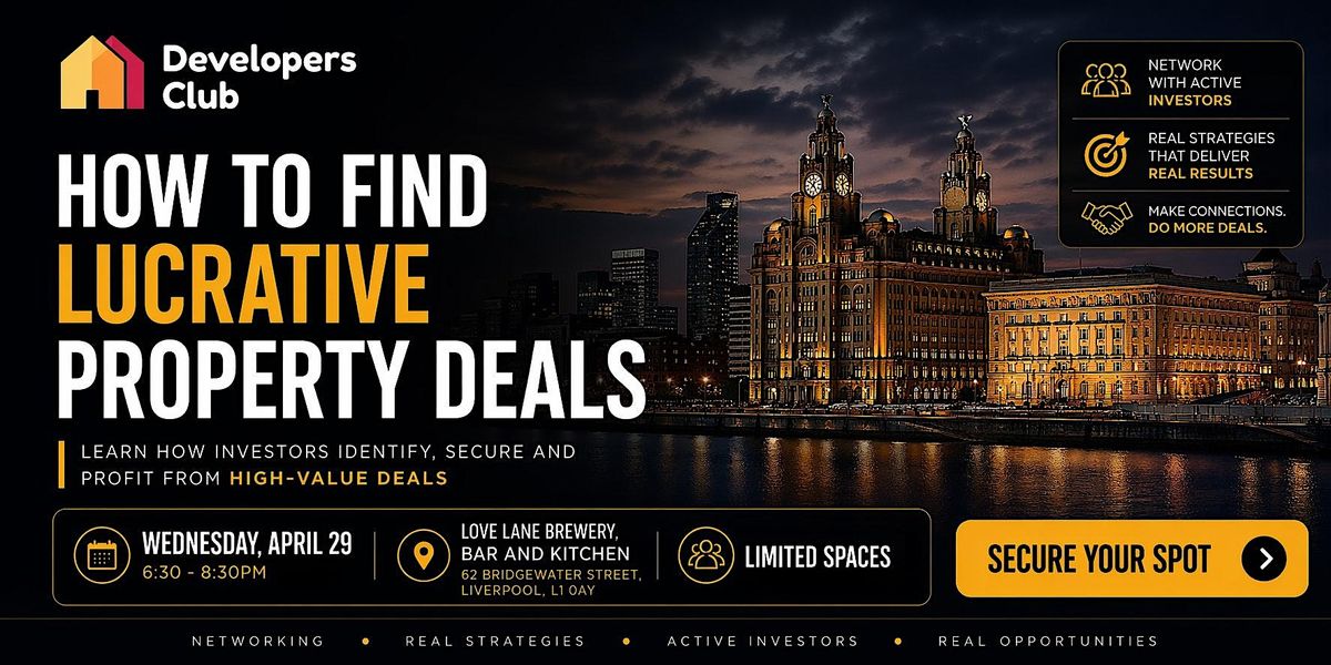 Developer Club, property networking in Liverpool for a masterclass with Will Mallard — a highly experienced developer and portfolio landlord — on how to find lucrative deals hiding in plain sight.