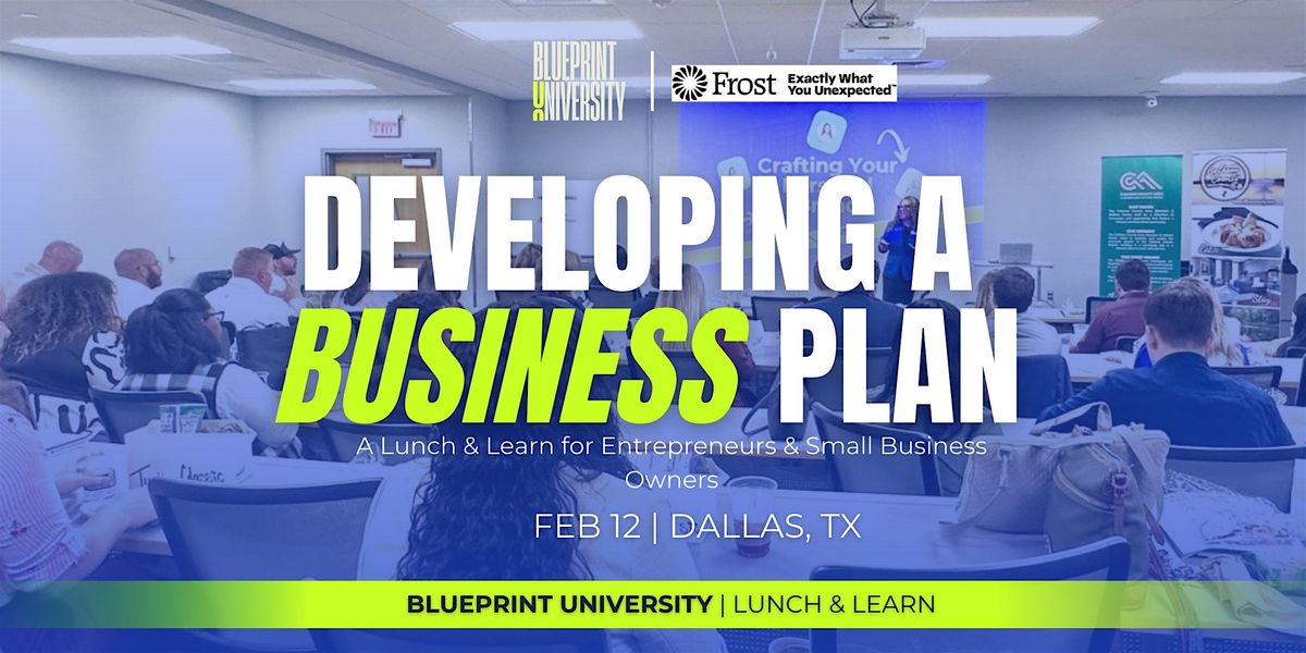 Join Blueprint University and Frost Bank for an educational Lunch & Learn designed to help entrepreneurs and small business owners understand the purpose, structure, and real-world use of a business plan.
