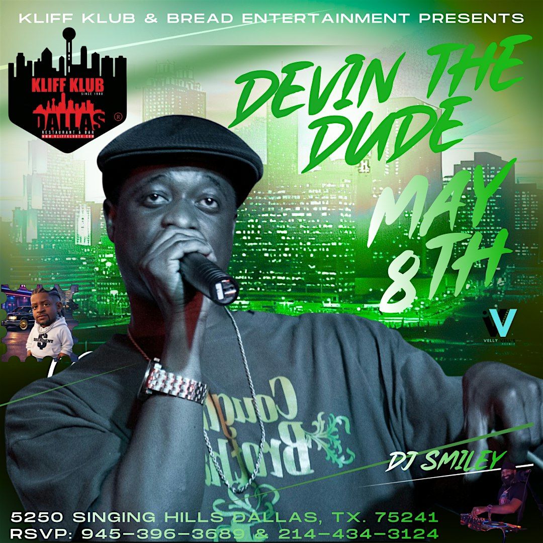 Get ready for an awesome night with Devin The Dude dropping those smooth vibes live on stage! This is your chance to experience his unique style and chill beats up close and personal. Bring your crew, relax, and enjoy good music and good times. Don't miss out on this in-person event that’s all about great tunes and good vibes!