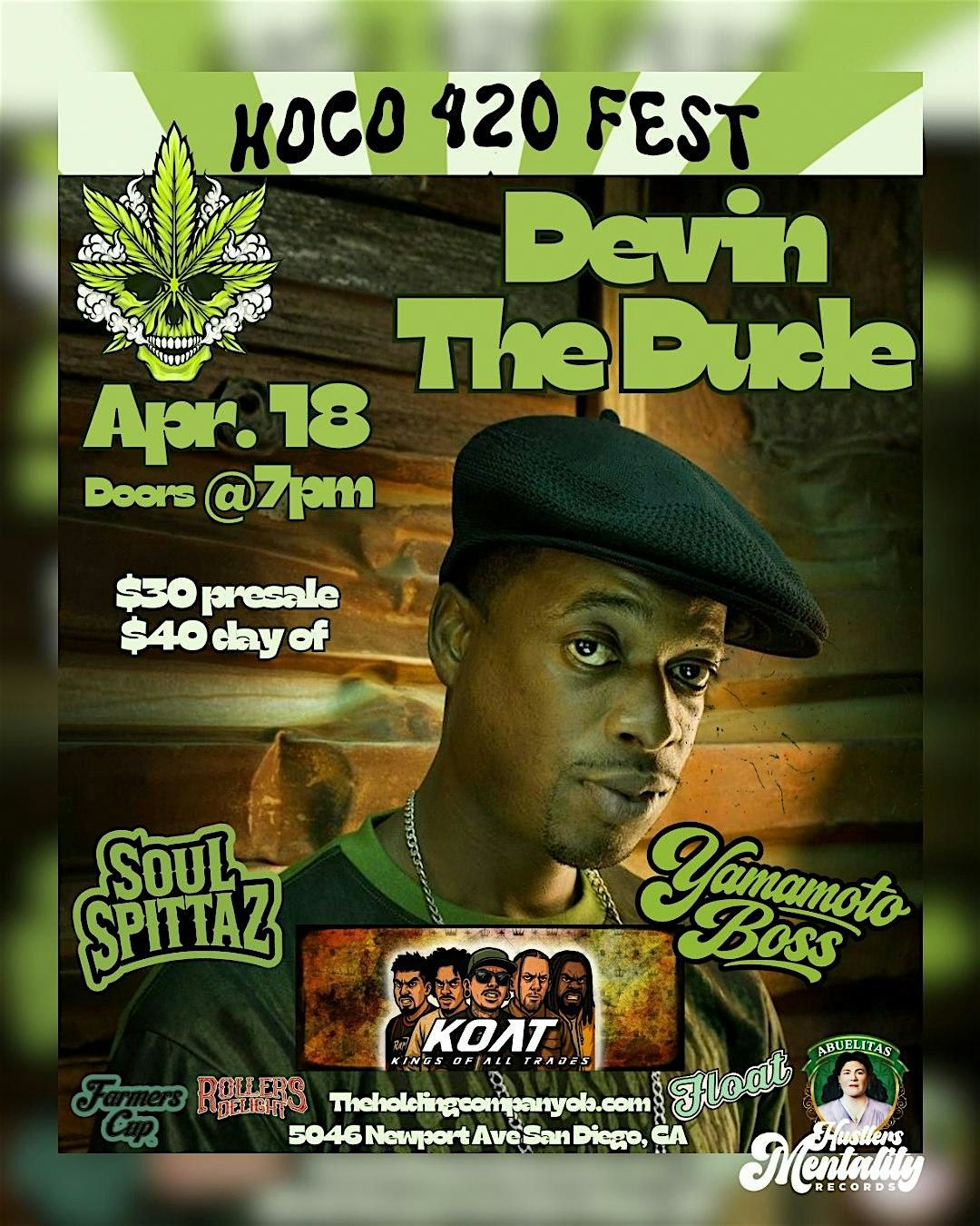 Devin The Dude is pulling up to headline alongside Yamamoto Boss, Soul Spittaz, and KOAT (Kings of All Trades) bringing that real hip hop energy to the stage.
