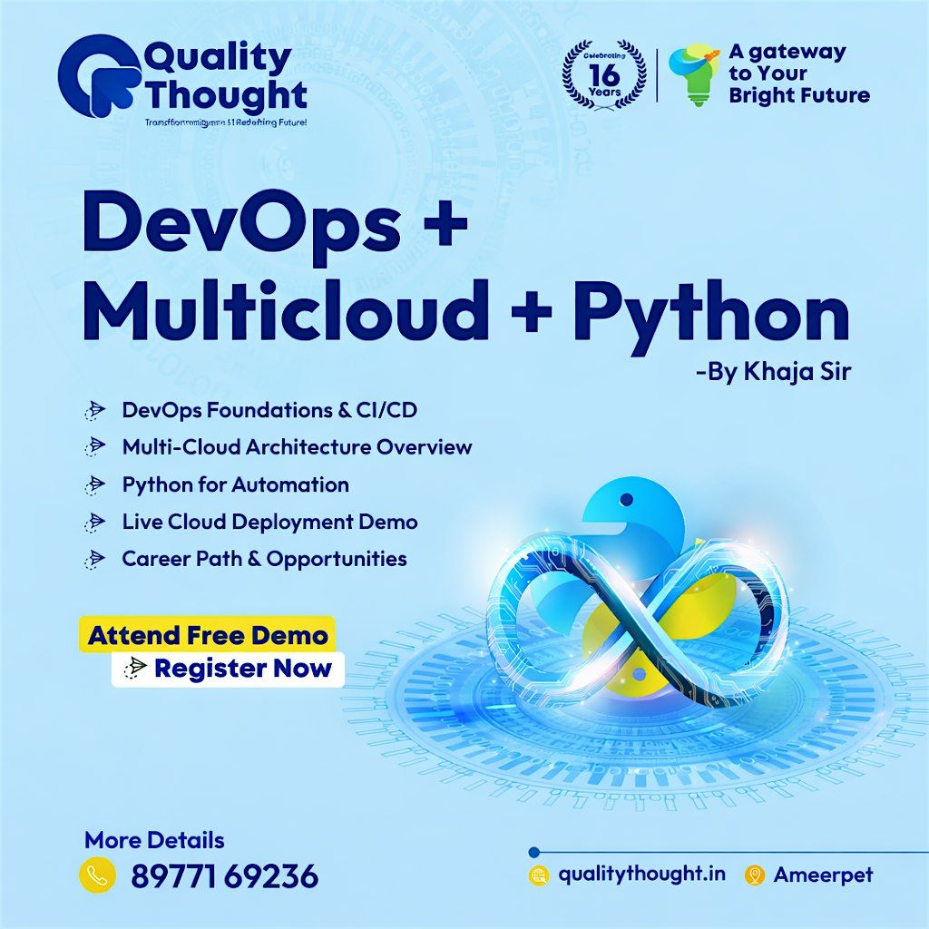 Welcome to the **DevOps Course FREE DEMO** at **Quality Thought**! Join us on **February 4, 2026 at 10:00 AM** (Asia/Kolkata Timezone) for an exciting preview of our upcoming course. Whether you're new to DevOps or looking to enhance your skills, this demo is perfect for you. Don't miss out on this opportunity to learn more about DevOps and how it can benefit your career. See you there!