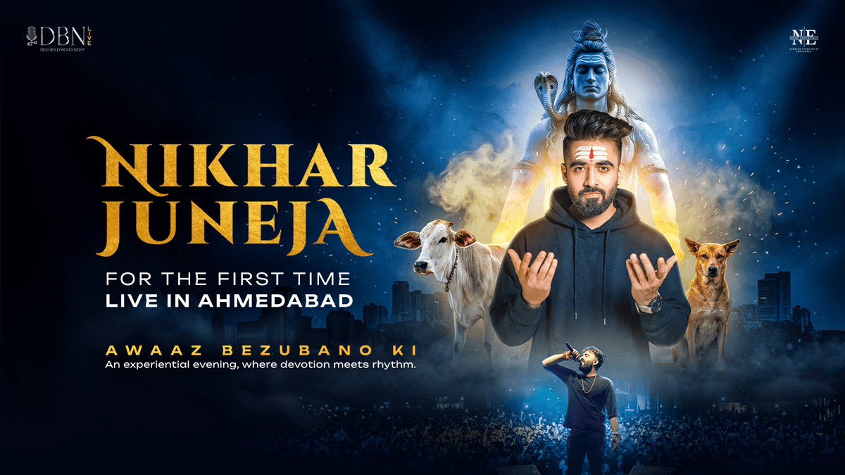 🙏 Awaz Bezubano Ki – Nikhar Juneja Live in Ahmedabad 🙏For the first time ever in Ahmedabad, experience an unforgettable evening with Nikhar Juneja filled with devotion, powerful energy, and heartfelt music. A soulful night dedicated to compassion, faith, and the voice of the voiceless.