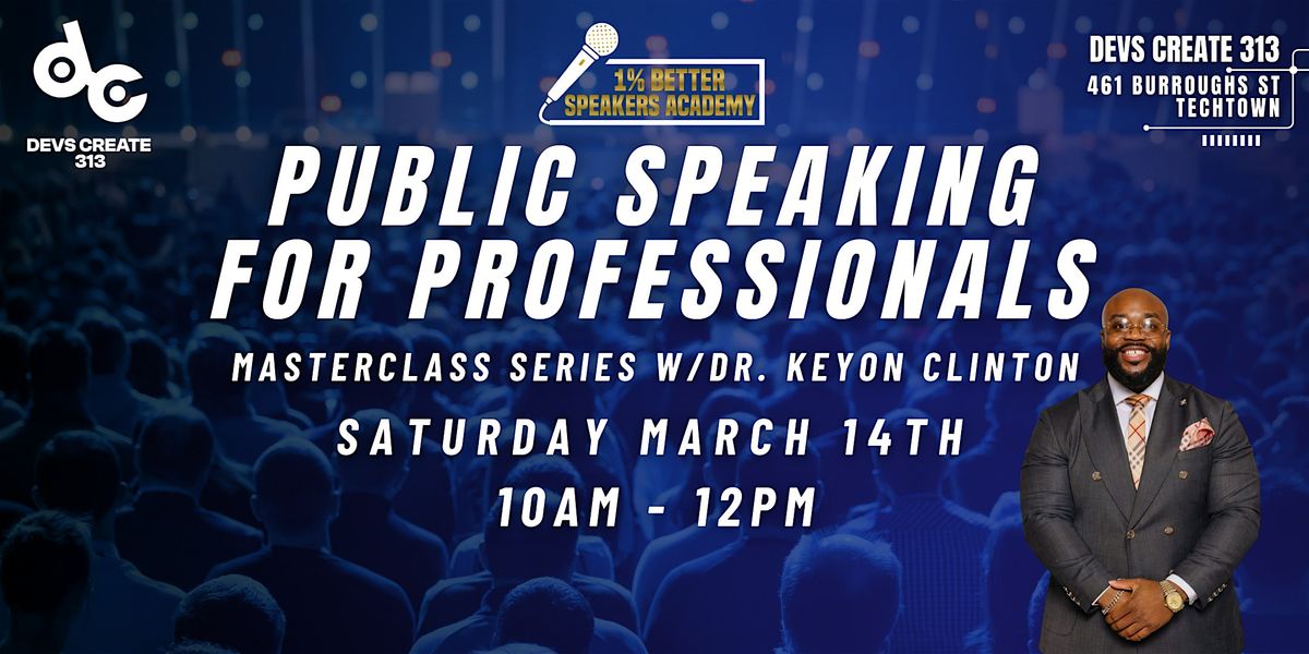 Join us for Public Speaking For Professionals w/Dr. Keyon Clinton! This masterclass will help you develop and enhance your speaking skills