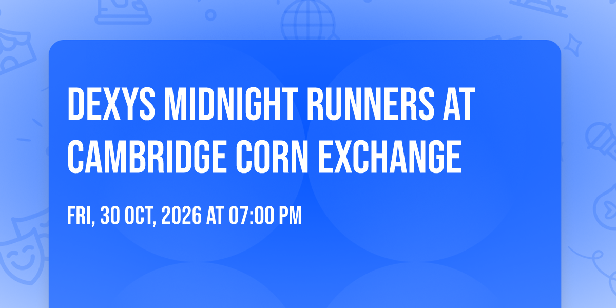 ✨ Discover the extraordinary at Dexys Midnight Runners at Cambridge Corn Exchange, where magic meets reality in ways you've never imagined! 🏛️ Set in Cambridge Corn Exchange nestled in bustling Cambridge, EN, this event promises to be a landmark occasion. 📅 Taking place on October 30th, 2026 at 07:00 PM, it's going to create an atmosphere where every moment becomes a cherished memory. 🌟 Immerse yourself in an experience crafted with attention to every detail, designed to surprise and delight at every turn. They have worked tirelessly to ensure this event exceeds all expectations, bringing together elements of entertainment, innovation, and pure joy. 🎊 Don't miss your chance to be part of this remarkable journey!