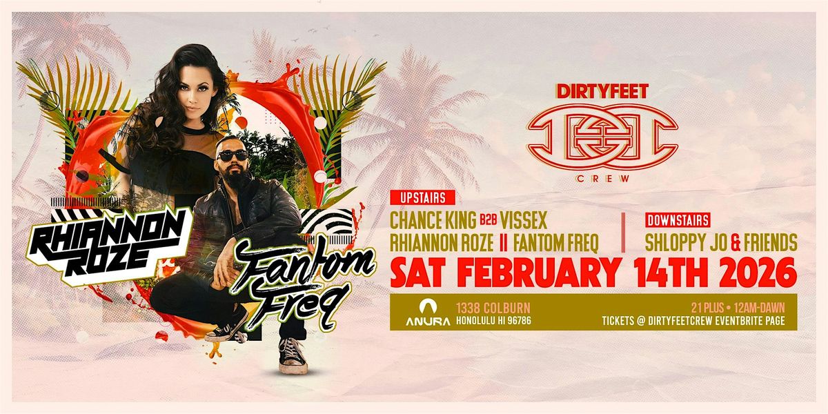 Dirty Feet Crew presents an elevated Valentine’s weekend afterhours at Anura — two rooms programmed from midnight till dawn, featuring internationally recognized talent alongside Hawai‘i’s sharpest selectors. This is house and underground electronic music built for dancers who stay through the full arc of a night.
