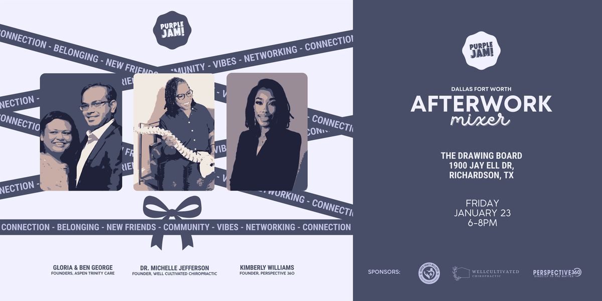 Elevate your Friday night at the Purple Jam! Afterwork Mixer. Whether you’re looking to expand your professional network, find a sense of belonging in the DFW community, or simply enjoy some great vibes after a long week, this is the place to be.