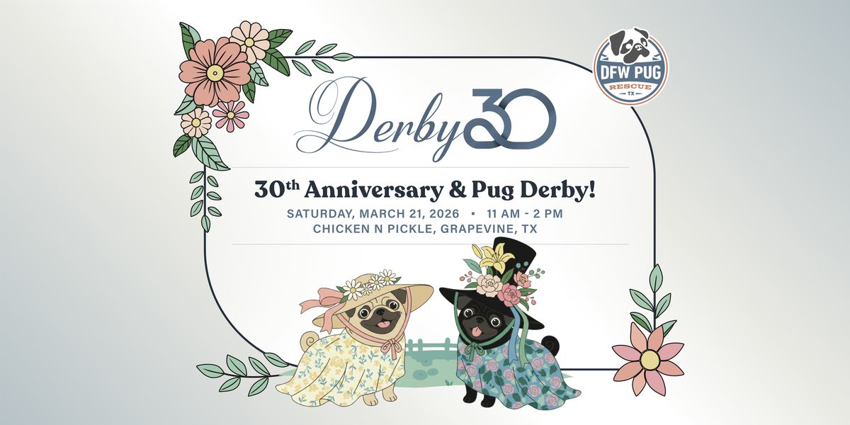 We encourage all past adopters to attend and bring their pugs to help us celebrate 30 years of DFW Pug Rescue.