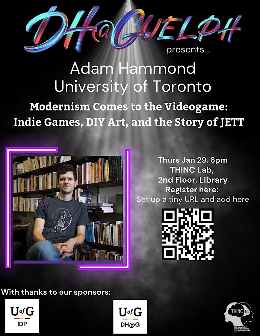 THINC Lab welcomes back Adam Hammond from the University of Toronto, to speak on Modernism Comes to the Videogame: Indie Games, DIY Art, and the Story of JETT.