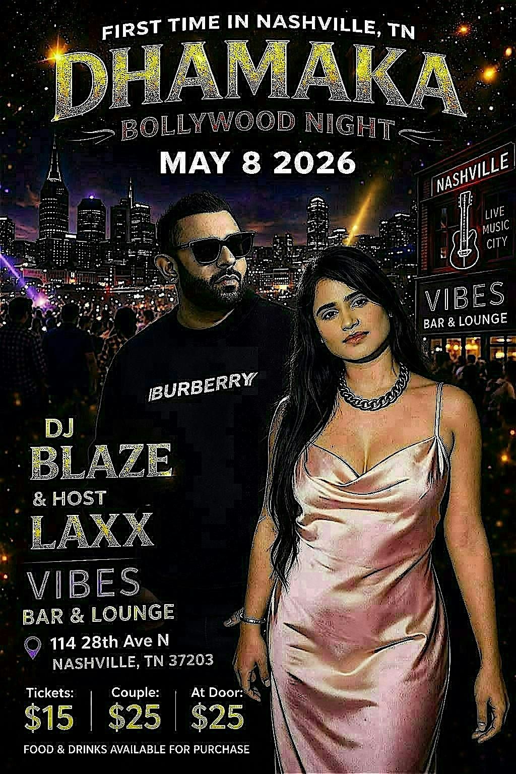 Get ready for an epic Bollywood party at Vibes Bar & Lounge! Join us on May 8, 2026 at 9:30 PM(Central Time)for a night full of dance, music, and fun. Whether you love classic hits or the latest Bollywood beats, this is the place to be. Bring your friends, dress to impress, and let's make it a night to remember!