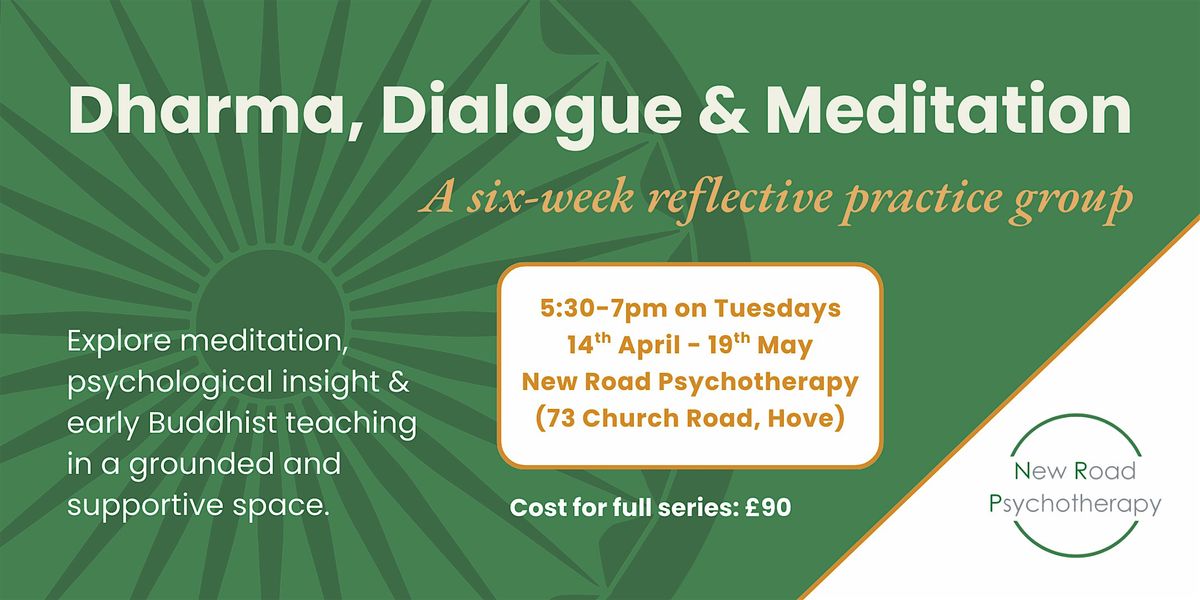 Dharma, Dialogue & Meditation is a small, closed reflective practice group for those curious about exploring the integration of Buddhist teachings - particularly those from the Pali Canon - with psychotherapeutic insight and ethical enquiry.