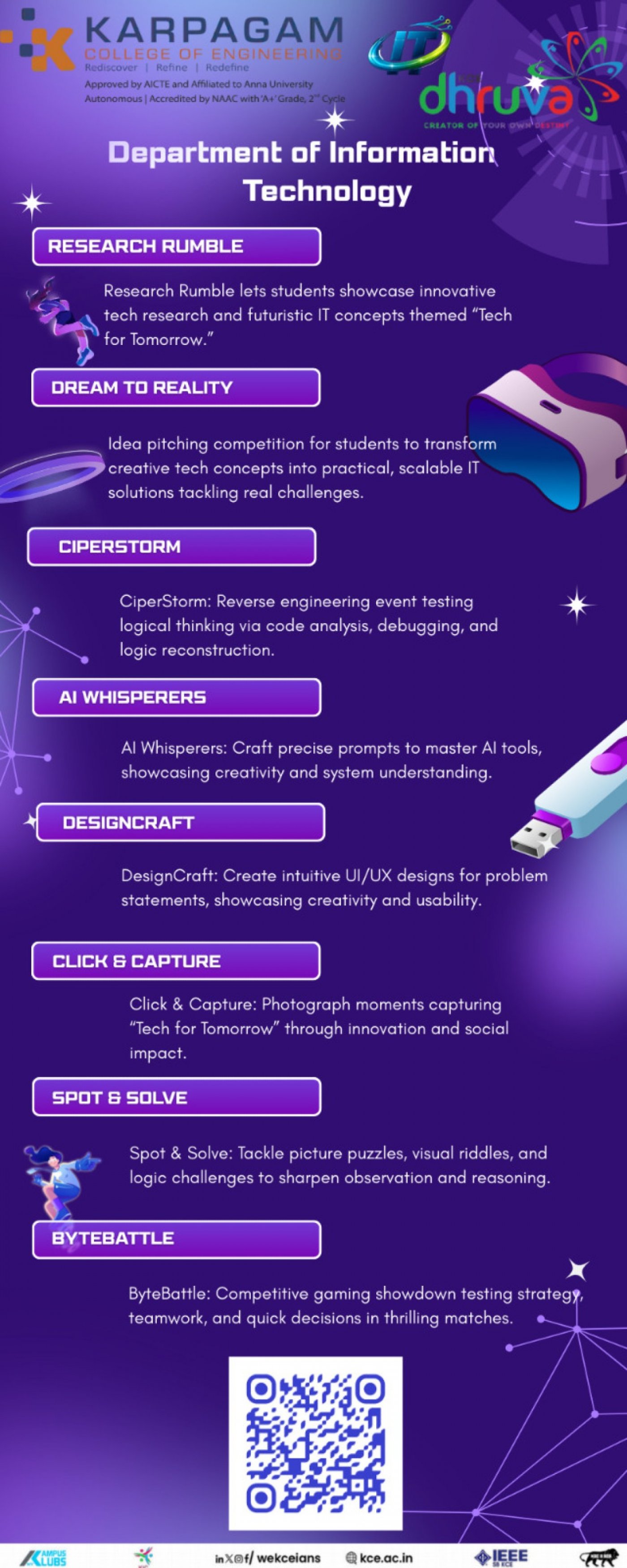 Dhruva 2026 also features entertainment programs, food stalls, and networking opportunities that create a vibrant and energetic atmosphere. With attractive prizes, engaging competitions, and innovative challenges, the event aims to encourage innovation, creativity, and overall student development.