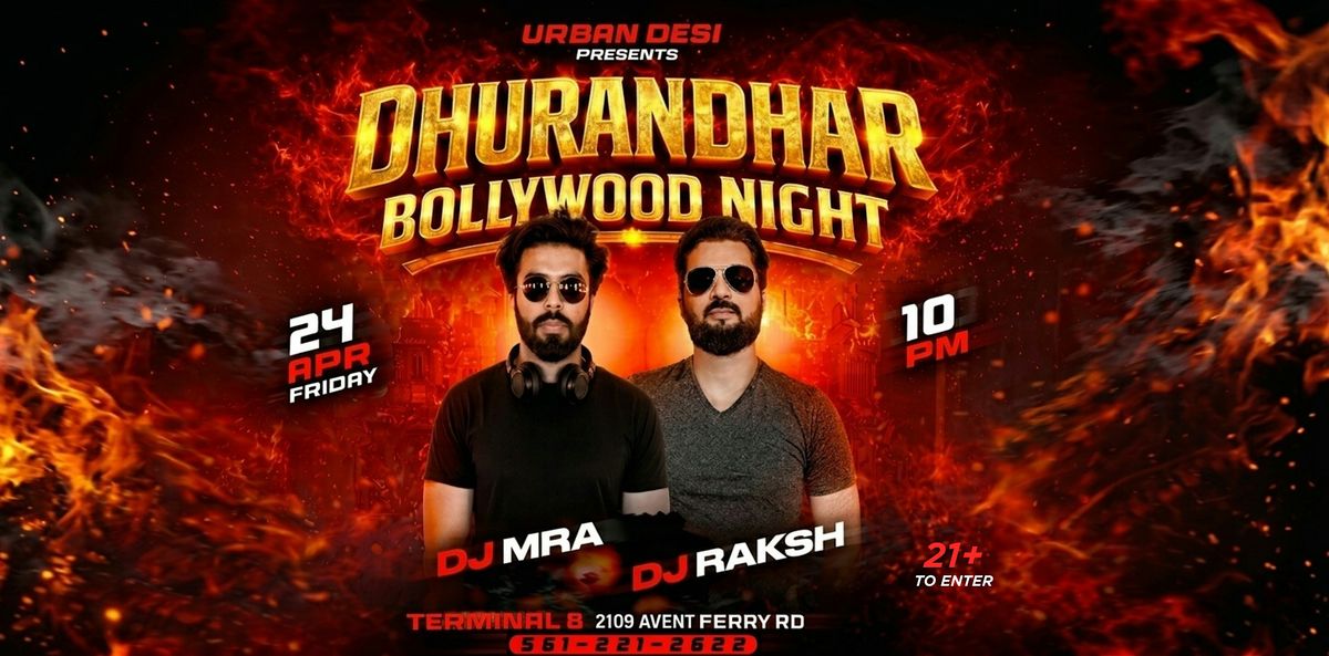 Get ready to set the dance floor ablaze! Urban Desi is bringing the heat back to Terminal 8 for Dhurandhar Bollywood Night.