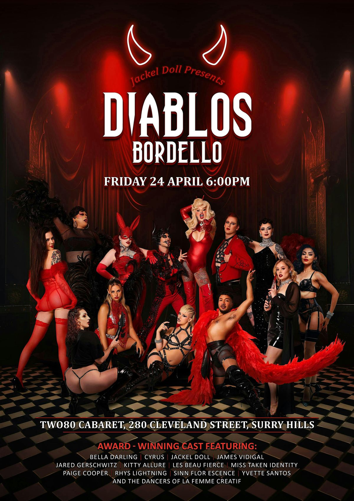Bella Darling, Cyrus, Jackel Doll, James Vidigal, Jared Gerswitchz, Kitty Allure, Les Beau Fierce, Miss Taken Identity, Paige Cooper, Rhys Lightning, Sinn Flor Escence, Yvette Santos & the dancers from La Femme Creatif.
