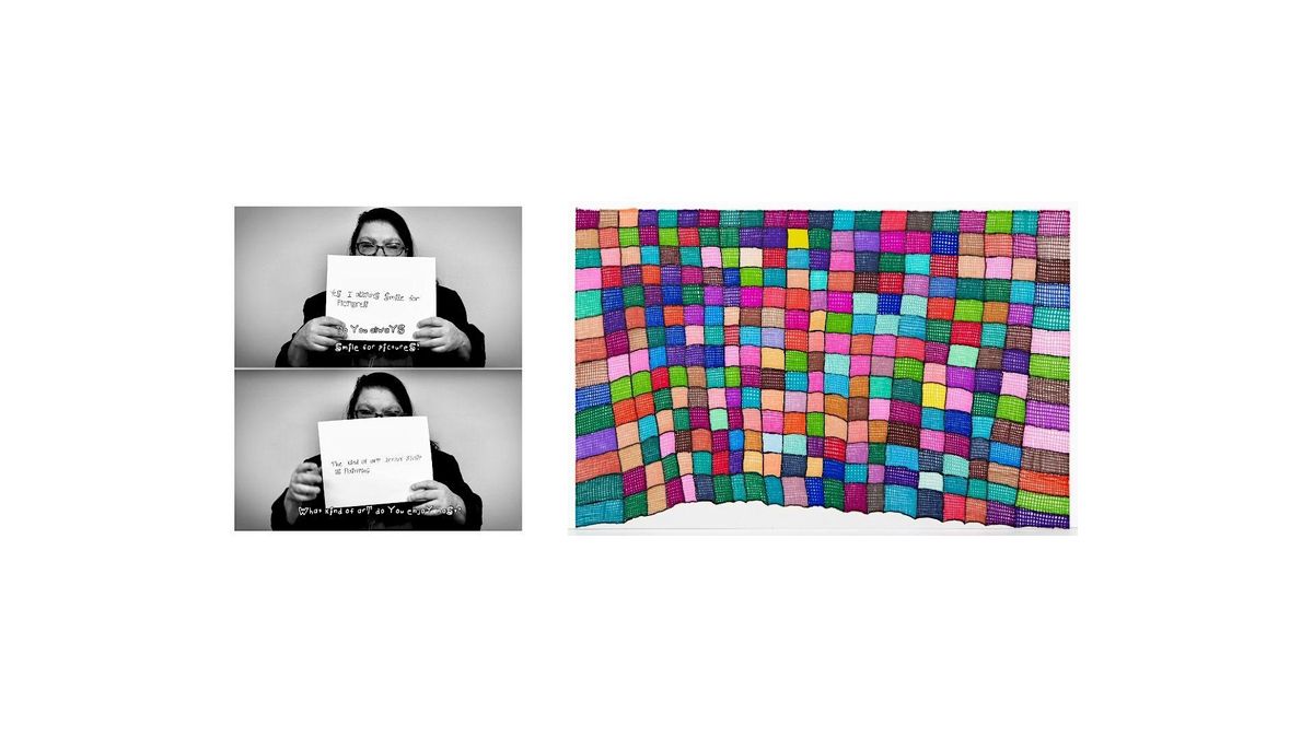 Left: Susan Janow (b. 1980, San Francisco, California), ANSWERS, Creative Growth, Auckland, California, 2018. Single-channel video, 10 min. 6 sec. Courtesy of the artist and Creative Growth
