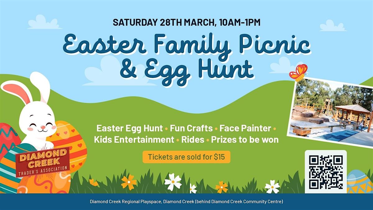 The Diamond Creek Easter Egg Hunt and Family Picnic is on again this year at the Diamond Creek Regional Playground!