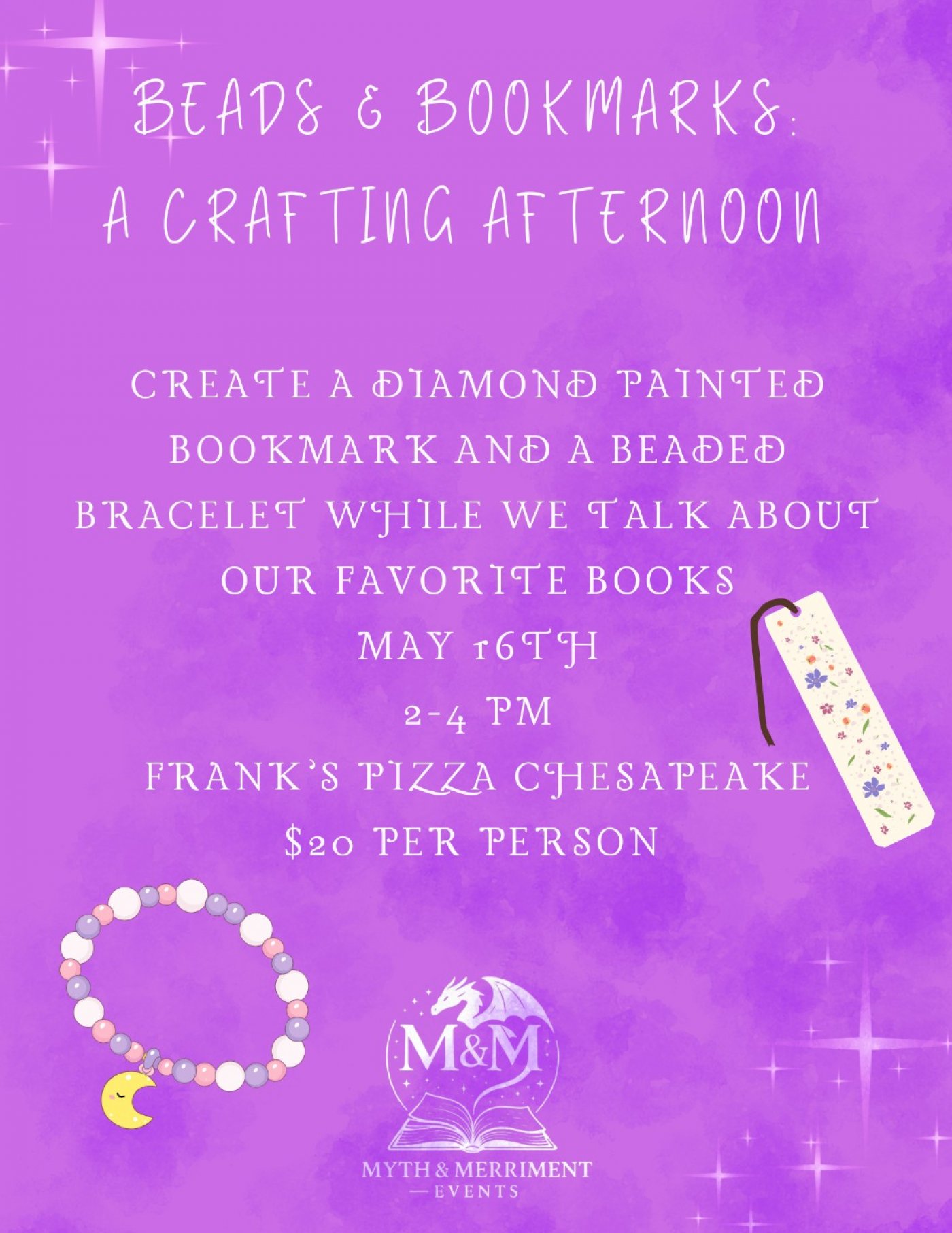 Create a diamond painted bookmark and a beaded bracelet while we chat about our favorite books and complete "side quests".
