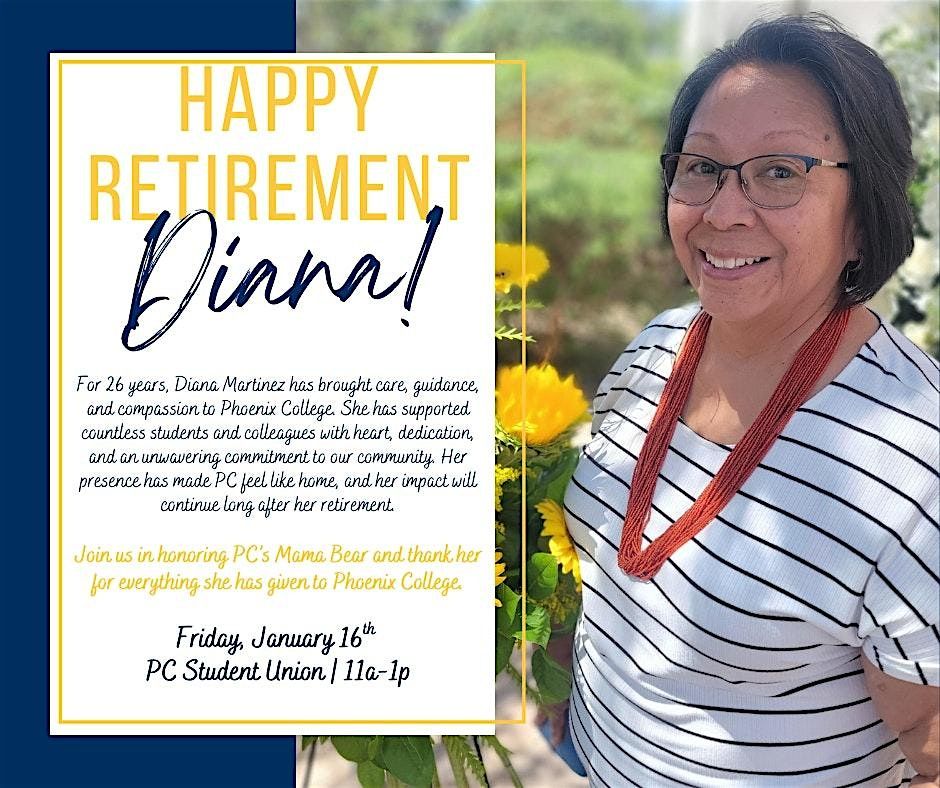 Join us for a fun in-person gathering to celebrate Diana Martinez’s amazing career and retirement! It’s a perfect chance to share stories, laughs, and good vibes as we honor Diana’s journey and achievements. Don’t miss this special day filled with great company and memorable moments!