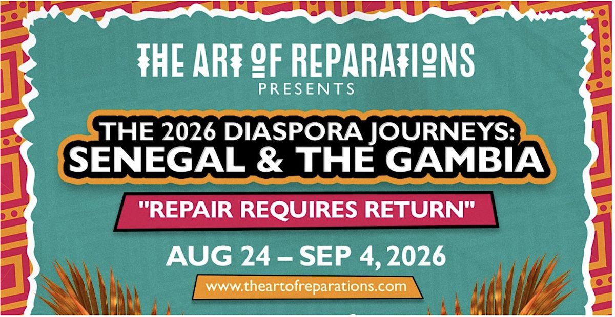 This gathering is an opportunity to learn more about our upcoming journey to Senegal and The Gambia — a rites of passage experience rooted in reparative justice, cultural exchange, ritual, and collective healing. We’ll share details about the travel experience, the Reparations Convening in Dakar, the curriculum, and how you can participate or support the work.