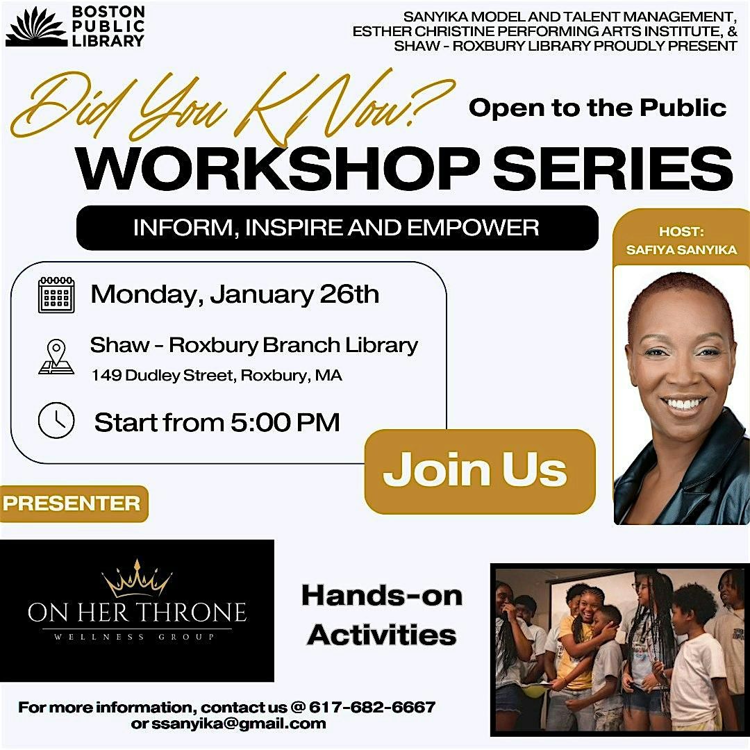 Join us for an awesome in-person experience at the Did You Know Workshop! It's a fun and casual way to discover cool facts, learn new things, and connect with others face-to-face. Perfect for curious minds looking to expand their knowledge in a laid-back setting. Don't miss out on this unique chance to explore and share interesting tidbits live and in person! Hands-on Activities and light refreshments are available.