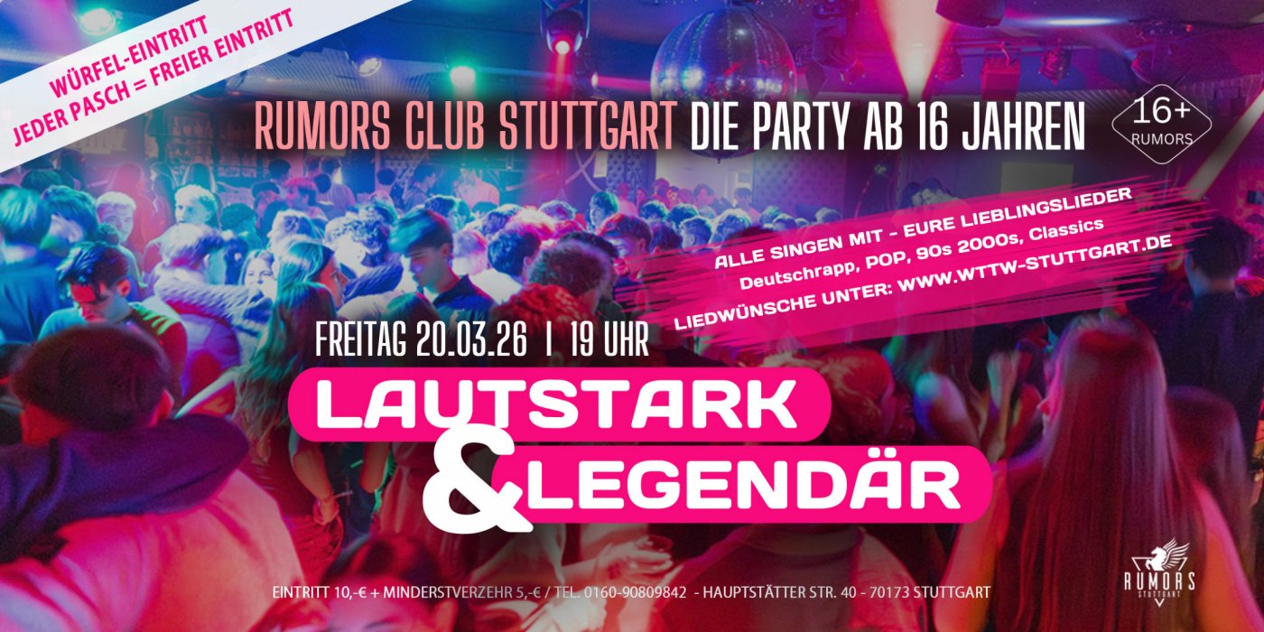 🔊 Weiter haben wir mit der „Lautstark & Legendär“ Party wohl die 100% Garantie maximaler Eskalation und Stimmung. Wir wissen, wie gerne Ihr mitsingt und dabei abgeht. Bereit also, die Lieder zu schmettern, die du liebst? Lautstark & Legendär steht ganz im Zeichen der Hits, die wir alle in und auswendig kennen!