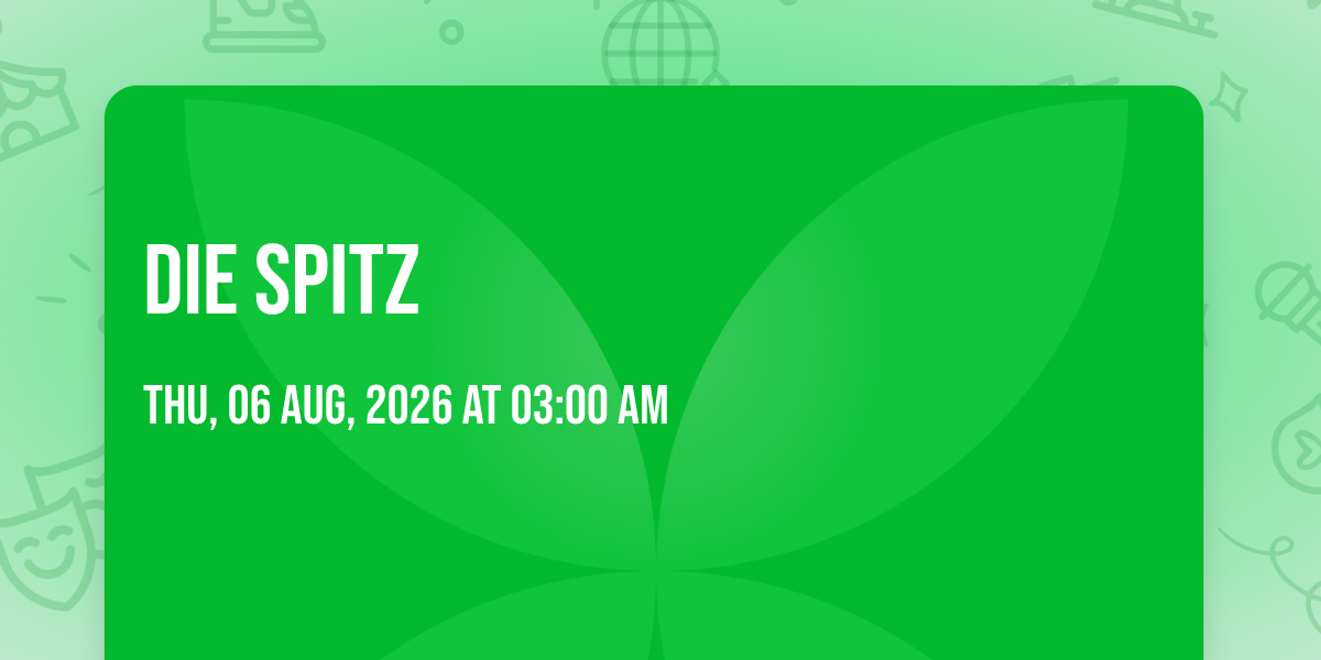 📍 Location: 34.1014, -118.323🌟 Journey into wonder at Die Spitz, where extraordinary experiences await around every corner! 🏛️ Set against the backdrop of The Fonda Theatre in dynamic Los Angeles, CA, this event promises to exceed all expectations. 📅 Join us on August 6th, 2026 at 03:00 AM for a celebration that combines innovation, entertainment, and community spirit in perfect harmony. ✨ There will be an atmosphere where memories are made and stories come alive, ensuring every guest experiences something truly remarkable. 🎊 This is more than just an event; it's a journey into the extraordinary!