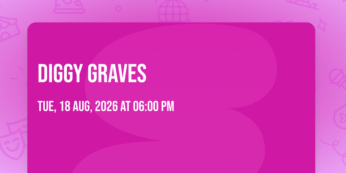 🌟 Be part of history at Diggy Graves, an extraordinary gathering that will captivate your imagination! 🏛️ The prestigious The Waiting Room Lounge - NE in Omaha, NE sets the stage for an unforgettable experience on August 18th, 2026 at 06:00 PM. ✨ They are bringing together the finest elements of entertainment and innovation to create moments that will take your breath away. From the moment you arrive, you'll be immersed in an atmosphere of wonder and excitement. 🎯 This carefully planned event ensures every guest experiences something truly special. 🎊 Early booking is recommended for this must-attend event of the season!http://maps.seatics.com/GeneralAdmissionEvent_VIP-GA_2021-02-02_2021-02-02_0918_05262022_152121_SVGC_tn.gif