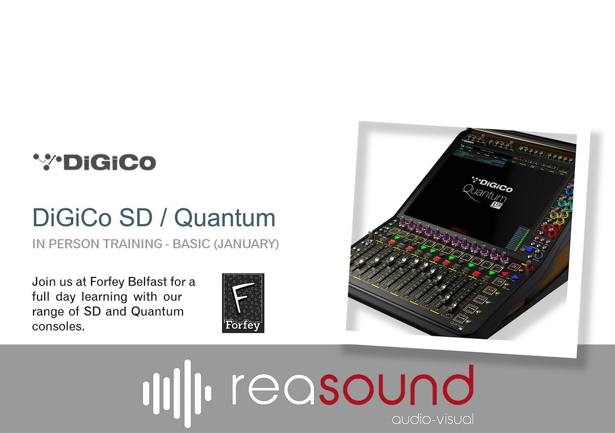Come and join us at Forfey, in Belfast, for a full day learning with our range of SD and Quantum consoles. Our training sessions are held intheir demonstrations rooms and are a mixture of presentation and hands-on practice. This training is aimed primarily at those who are new to DiGiCo but is also useful for those who feel less confident when using our consoles. We will also have the opportunity to introduce you to the KLANG Immersive Audio Engine and Personal Monitoring System and the Fourier transform.engine.