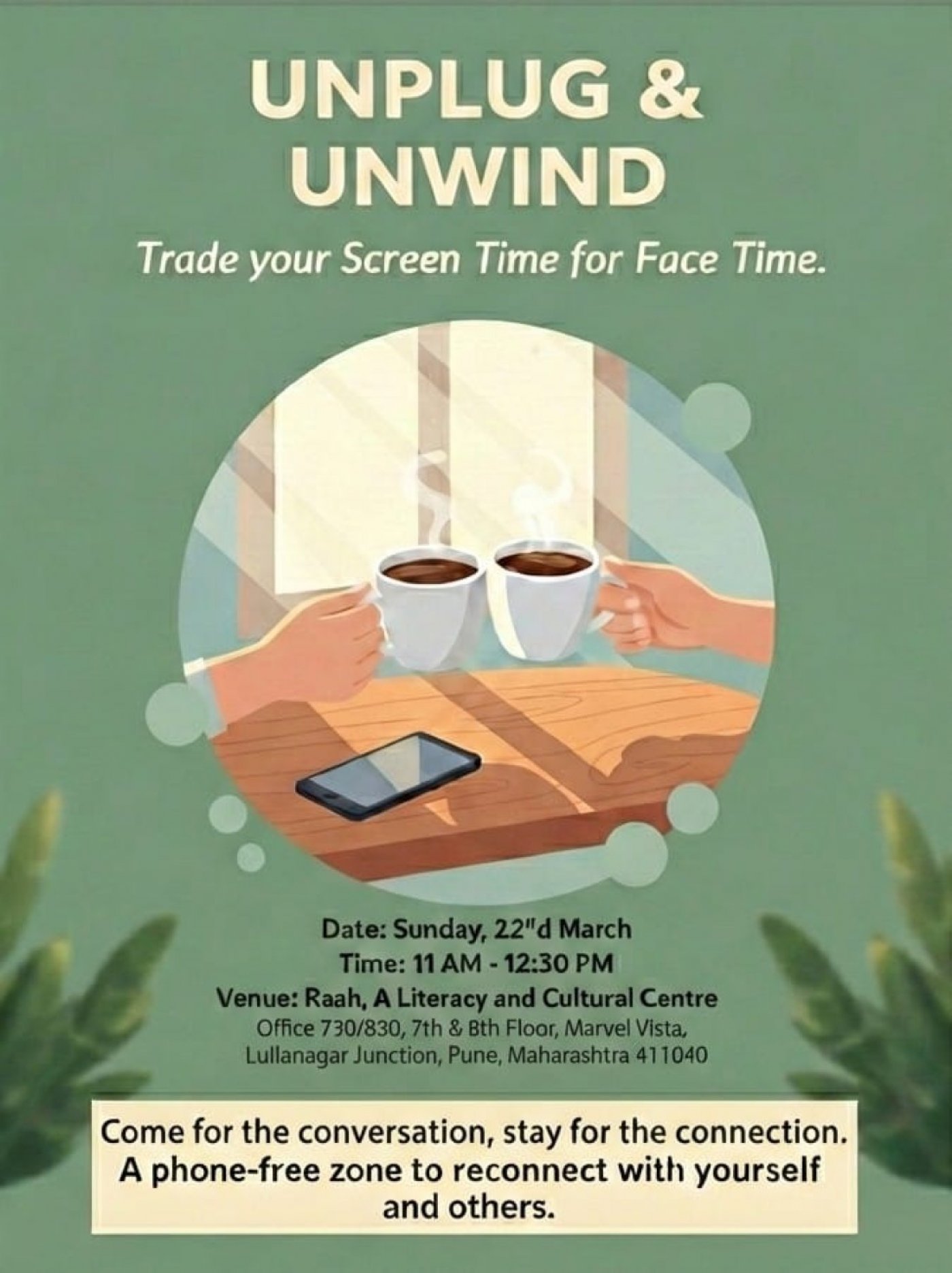 Join us to trade your screen time for meaningful face time, rediscovering the joy of presence and sustained focus. This is a dedicated safe space to put down the digital mask, share your real story, and truly be seen by those around you.