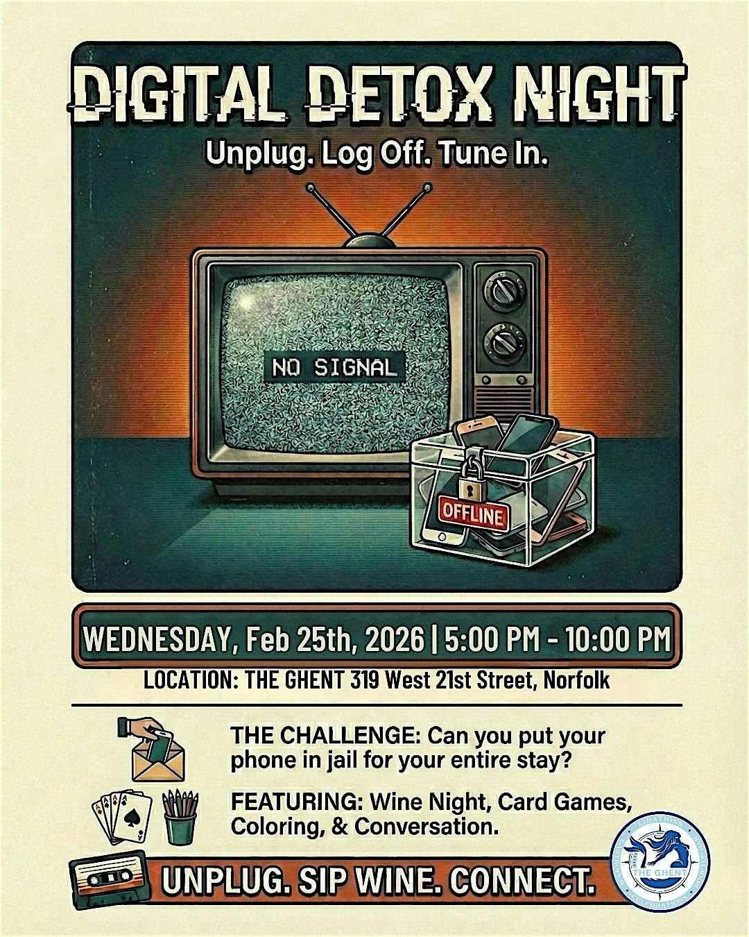 We are stapling phones into envelopes at the door. Inside, we're swapping scrolling for Wine Night, card games, coloring, and conversation.