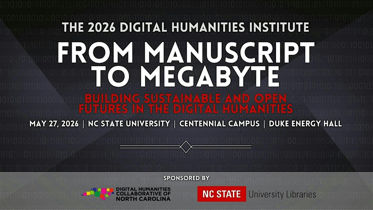 In partnership with North Carolina State University Libraries, The Digital Humanities Collaborative of North Carolina will host the 2026 institute at NC State's Centennial Campus. This year's theme, From Manuscript to Megabyte: Building Sustainable and Open Futures in the Digital Humanities, will include discussion on the evolving landscapes of knowledge creation and access and foreground the vital role of libraries, open education, and sustainable academic systems in bridging traditional and emerging media forms. From medieval manuscripts to metadata, from analog archives to augmented reality, we aim to explore how digital humanities can serve as a bridge between past and present—anchoring the humanities in systems that are accessible and enduring.