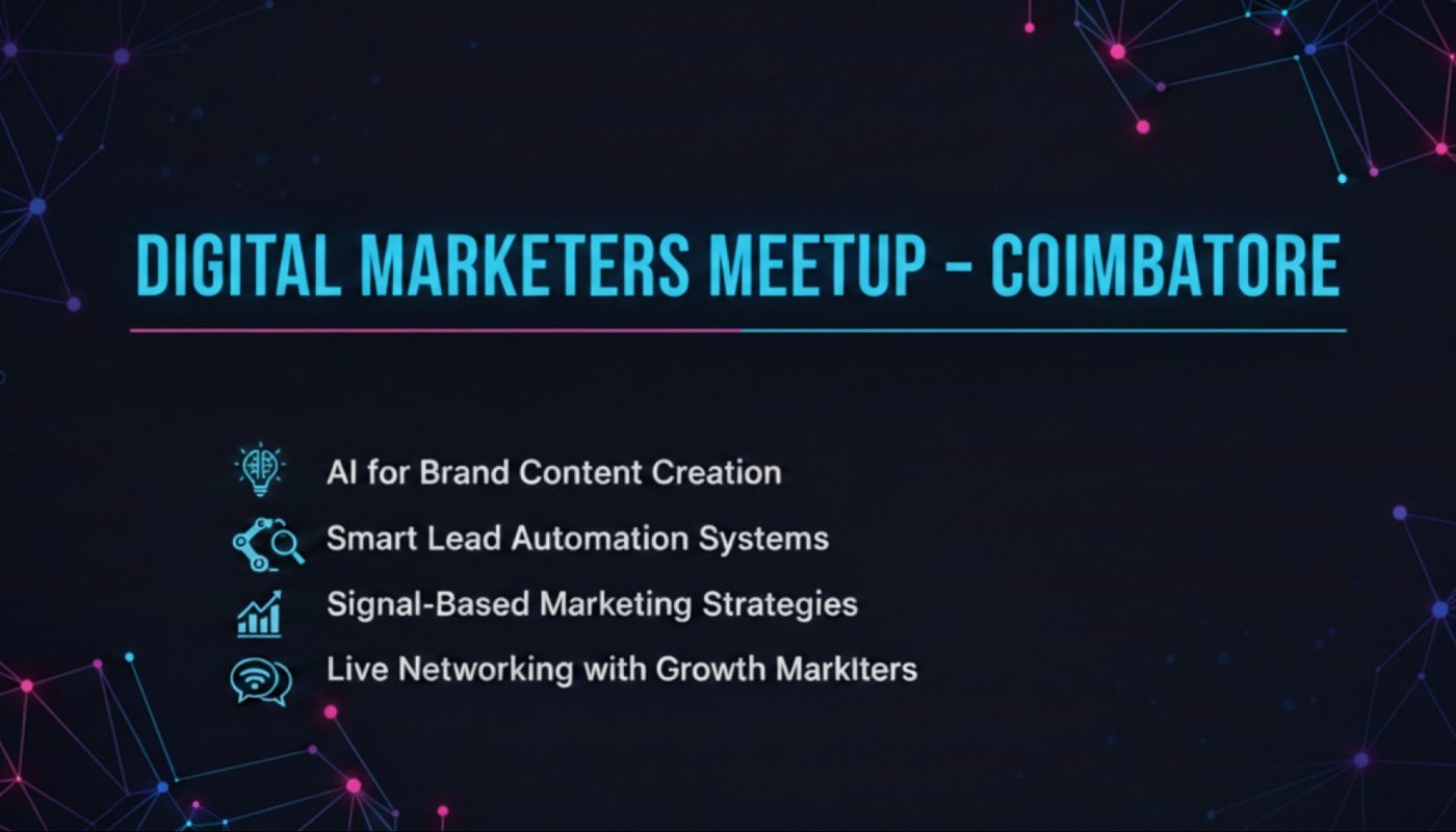 A meetup for founders, digital marketers, and growth professionals in Coimbatore to collaborate, learn, and build a strong local SaaS marketing community. If you work in content, SEO, paid ads, product-led growth, AI marketing, or SaaS promotion, this is for you.