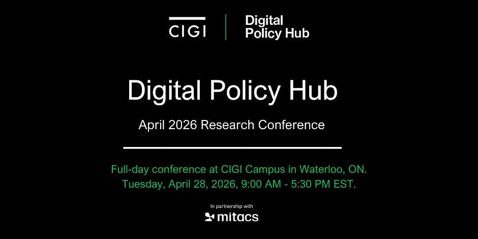 Please join us for the Digital Policy Hub Research Conference, taking place at the CIGI Campus (67 Erb Street West, Waterloo) in the Auditorium. This full-day event will feature panel presentations from the Hub’s current cohort, who will share insights on the program’s core research themes, showcasing the work developed over the course of their fellowship term. For more information on the Digital Policy Hub, please visit our website.