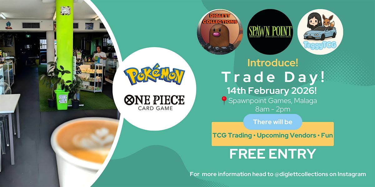 Get ready for an epic trade day event! Join Diglett collections, Spawnpoint Games, and TeggyTCG as we come together for a day packed with trading, fun, and meeting fellow collectors and gamers.