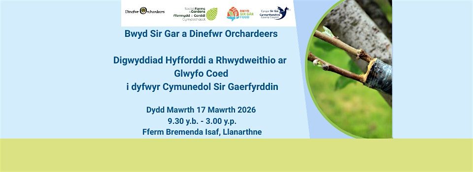 Ymunwch â ni am sesiwn hyfforddiant proffesiynol ar glwyfo coed gyda Dinefwr Orchardeers, gan gefnogi datblygiad ardd Fferm Bremenda Isaf.
