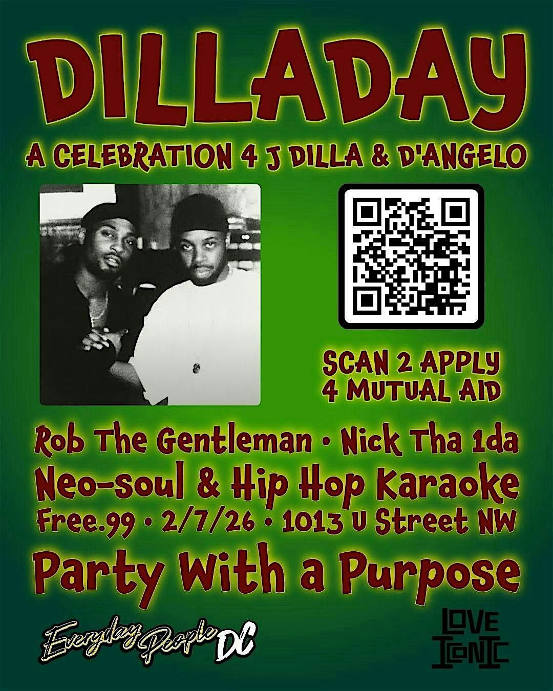 celebrate J DILLA & D'ANGELO's birthdays with us! listen to music they've created, produced and inspired. enjoy food, drinks, dj sets, karaoke, and great energy!