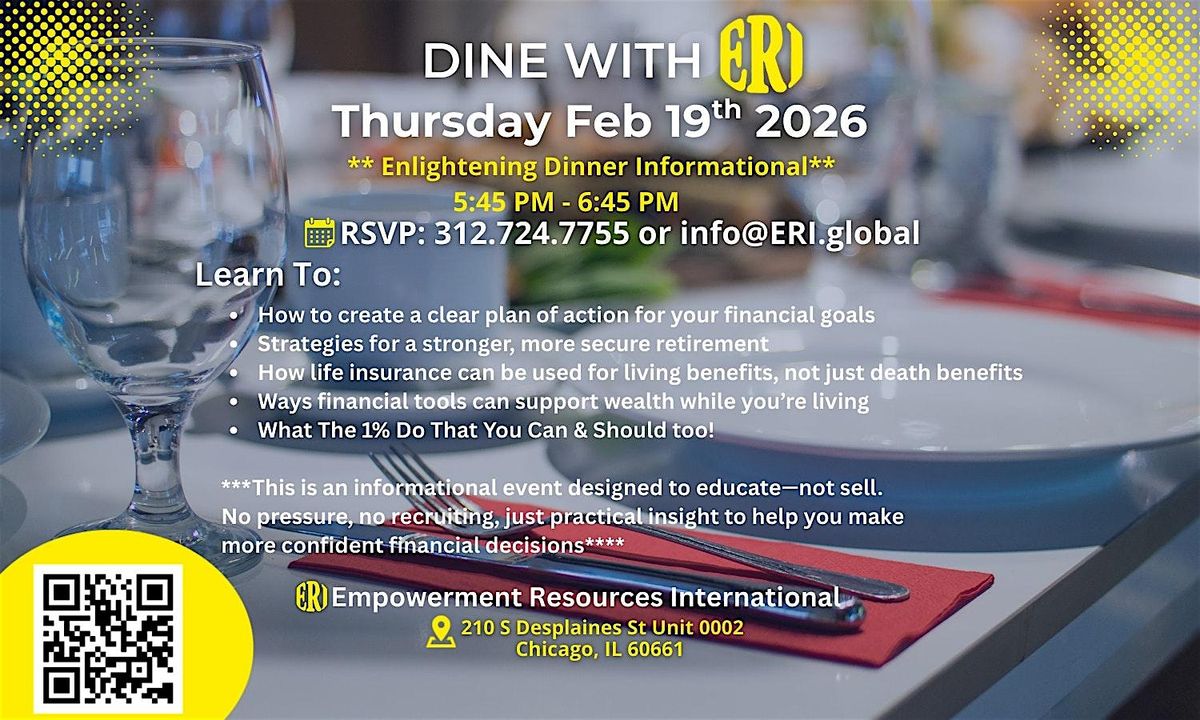 Empowerment Resources International invites you to join us for our next Dine with ERI event! Enjoy an evening of networking, learning, and conversation while gaining insights into practical wealth-building strategies.