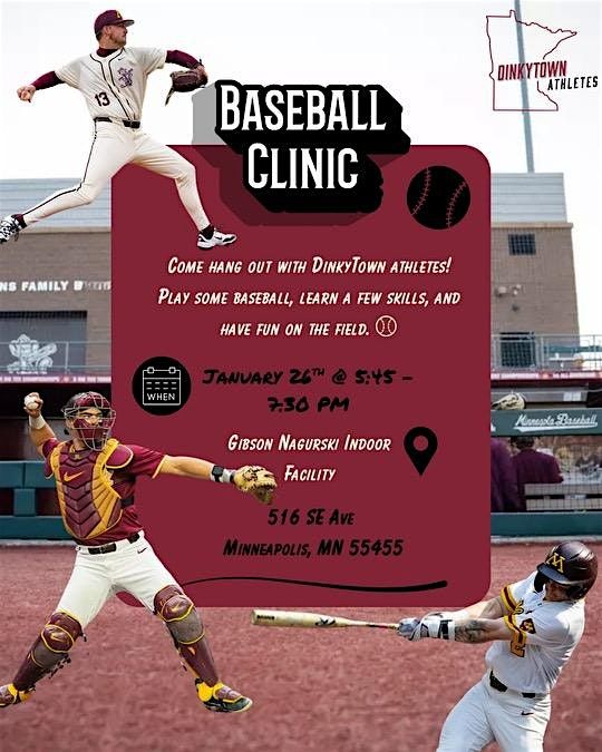 Join Dinkytown Athletes and the Men's Baseball team for a clinic on January 26th at the Gibson Nagurski Indoor Facility.