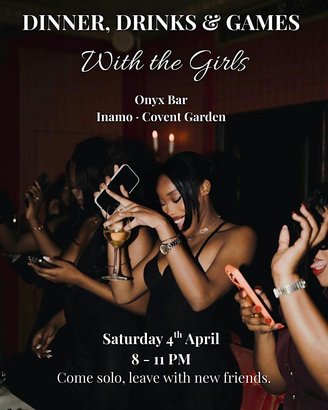Come join the girls and join us for a fun, feel-good evening at Onyx Bar (Inamo Covent Garden) - think good food, playful games, prosecco, and even better company.