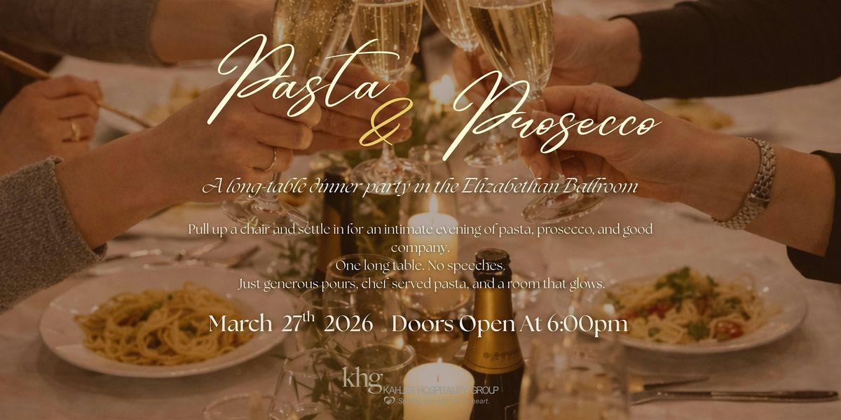 Join us for a relaxed, Italian-inspired dinner party in the historic Elizabethan Ballroom. Pasta & Prosecco Night is designed to feel social, candlelit, and fun, perfect for girls’ nights, date nights, birthdays, moms and daughters, and group outings.