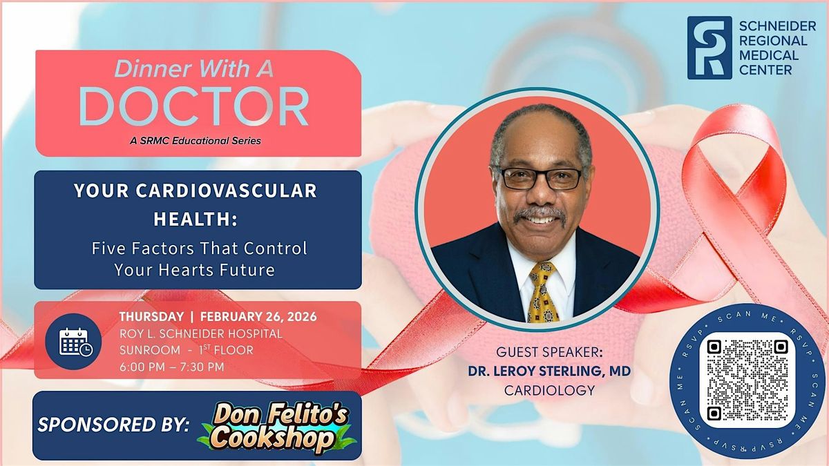 Join us for SRMC’s Dinner with a Doctor (DWD) on Thursday, February 26th at 6:00 PM in recognition of National Heart Month.
