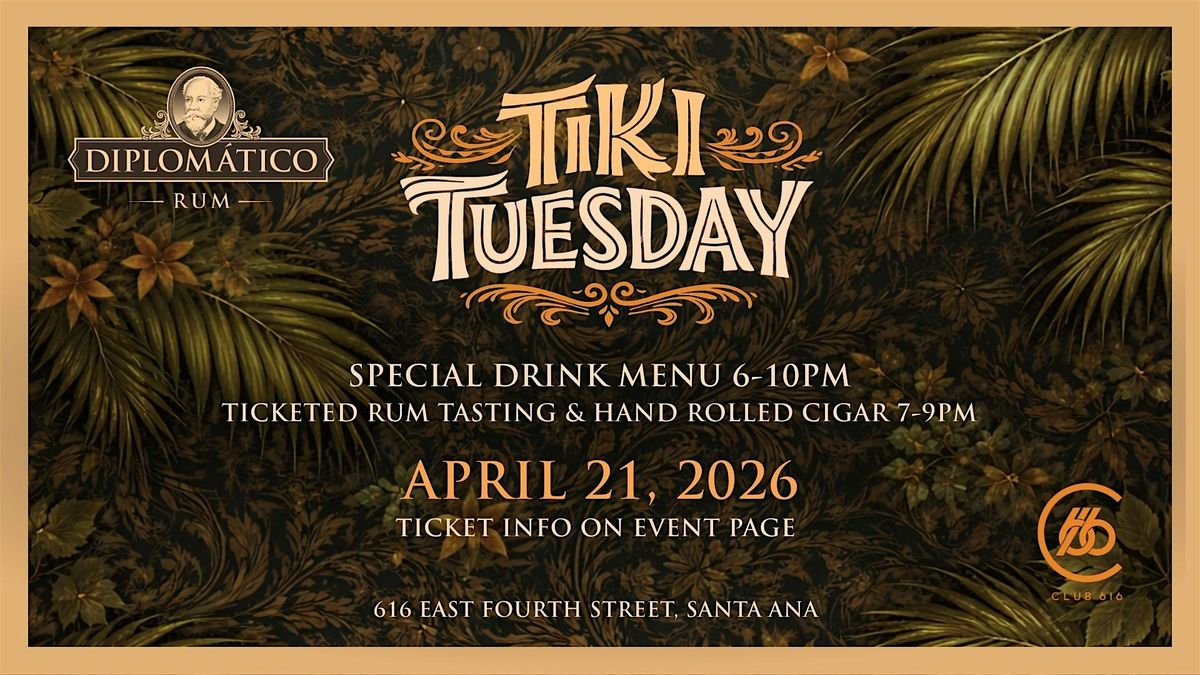 📍 Club 616 | 616 E. 4th Street, Santa Ana 📅 Tuesday, April 21, 2026 🥃 Tasting: 7–9PM on the back patio | $50 + fees 🍹 Tiki drink menu inside: 6–10PM 🚗 We recommend the 4th Street parking structure or a rideshare. Please note: the nearby grocery store does tow.